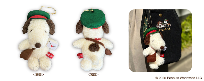 配達員風の格好をしたスヌーピーとスヌーピーのきょうだいたちのイラストに深いグリーンをあわせ、かわいらしくも大人っぽい、クラシカルなデザインに仕上げました。アイテムは、ショルダーポシェット・マルチケース・ボールペンと一筆箋・マスコットキーホルダーの計4商品をラインナップ。