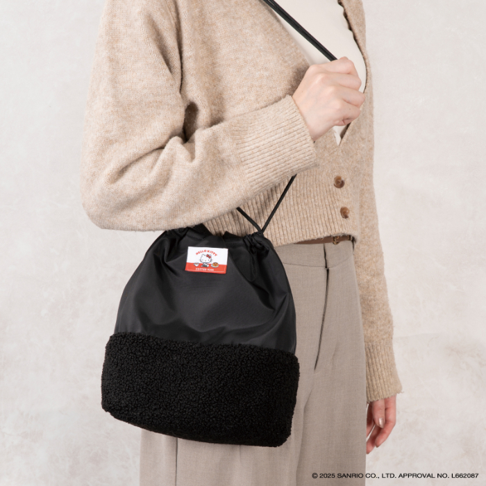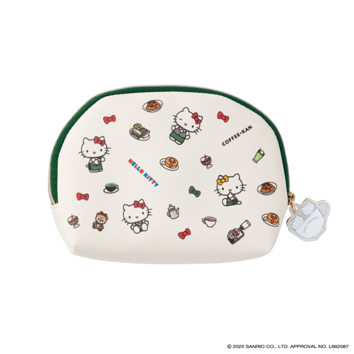 今年のハッピーバッグは、2種類の異なる素材を組み合わせた「ボア巾着バッグ」、ハローキティの世界観にあわせて『珈琲館』のメニューのイラストを描き起こした「オリジナルポーチ」、商品引換券2枚と「珈琲館ブレンド ドリップバッグ1箱」がセットになった数量限定の特別なアイテムです。