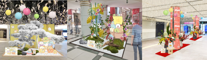 12月26日(金)~2026年1月13日(火)の期間は、お正月ビジュアルのすみっコたちと華やかな松やお花が空間を彩るお正月装飾を実施します。