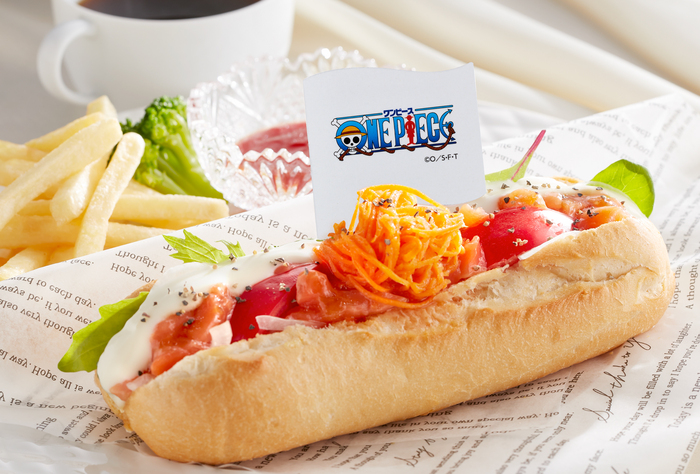 第2弾限定メニューは、魚人空手の達人ジンベエの技名にもある「瓦」にちなんだ「ジンベエの魚人空手の瓦割り和風ハンバーグ」や、ロビンのハナハナの実をイメージした「ニコ・ロビンのハナやかモッツァレラサーモンサンド(ドリンクバー付)」、そしてデザートではチョッパーの、あの名シーンを連想させる「チョッパーの桜舞うホットケーキプレート」が登場。全期間で販売中のルフィ、ゾロ、サンジ、ナミのメニューと一緒に楽しんで♪