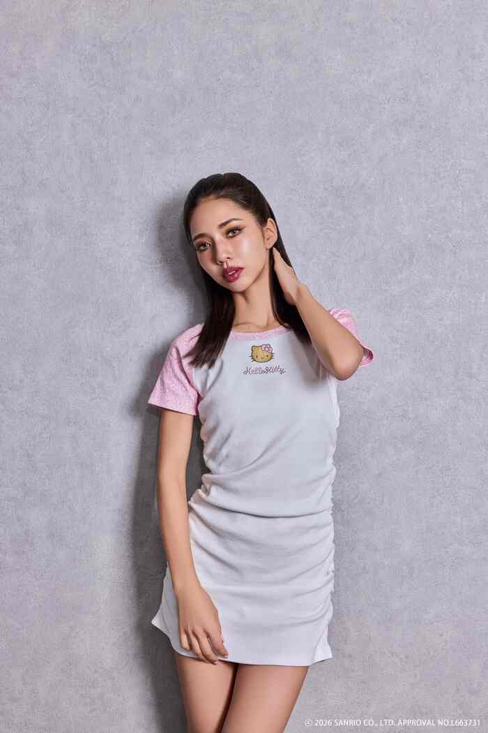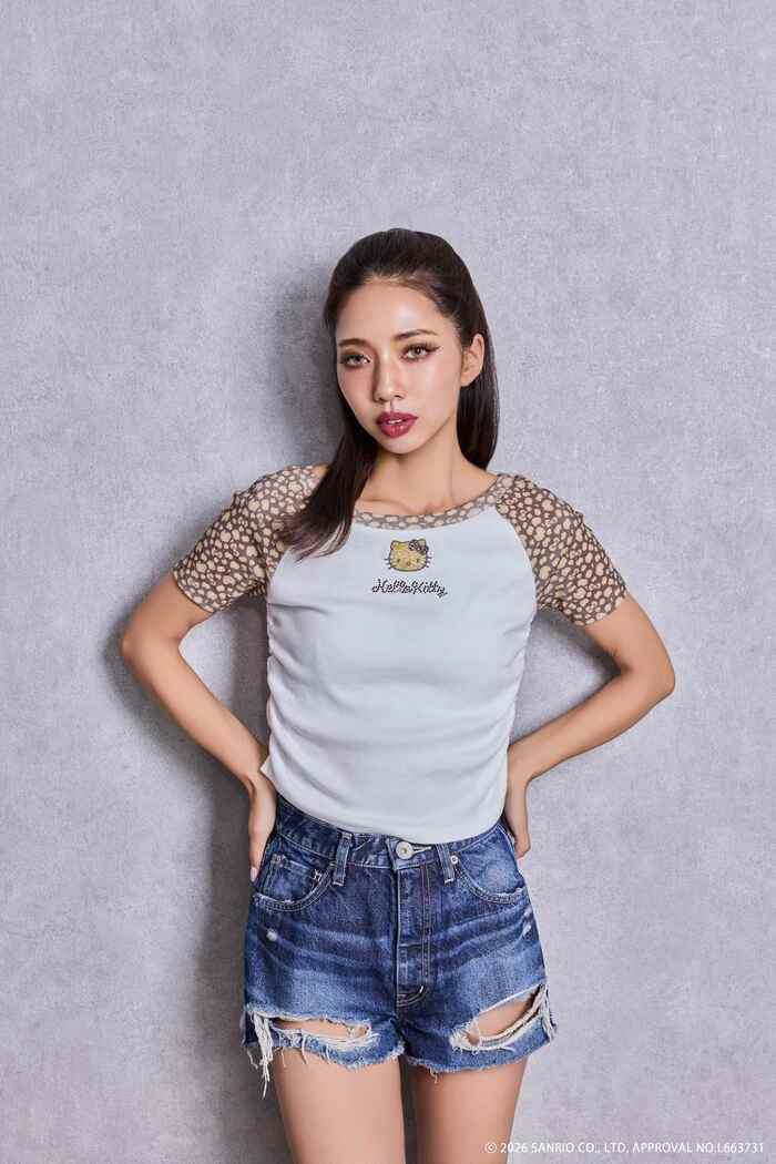 日焼けしたデザインのハローキティがキュートなグラフィックと袖のハローキティオリジナルレオパード柄が目を惹く、Tシャツとワンピースの全2型を展開します。