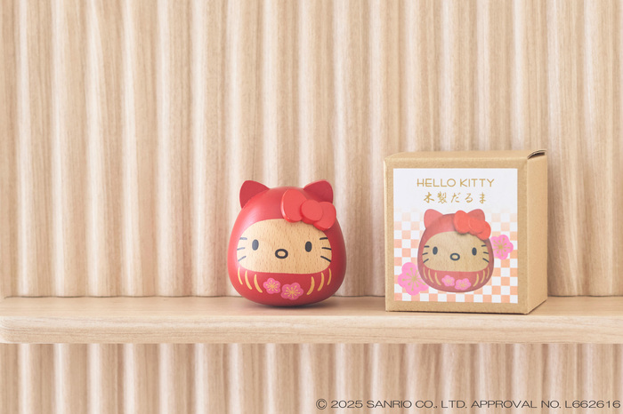 温かみのある木製で作られたサンリオのキャラクターのだるまが登場。手に取るたびに木のぬくもりを感じられ、ころんとしたフォルムが心を癒します。