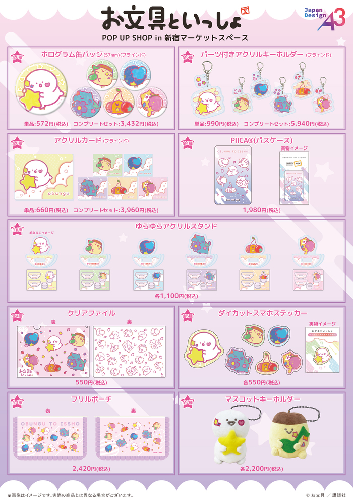 マスコットキーホルダーをはじめ、パステルポップver.のお文具さんたちをデザインした新作グッズがたくさん登場。