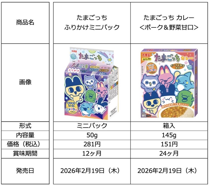 丸美屋食品工業は、「たまごっち ふりかけミニパック」と「たまごっち カレー<ポーク&野菜甘口>」を2026年2月19日(木)に新発売します。