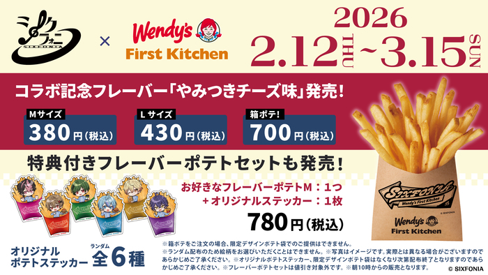 ウェンディーズ・ジャパン及び、ファーストキッチンは、2026年2月12日(木)~3月15日(日)までの期間限定で、2.5次元タレントグループ「シクフォニ」とのコラボキャンペーンを、「ウェンディーズ・ ファーストキッチン」及び「ファーストキッチン」にて開催します。