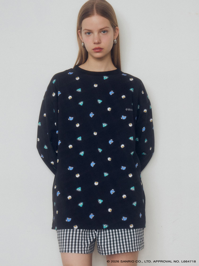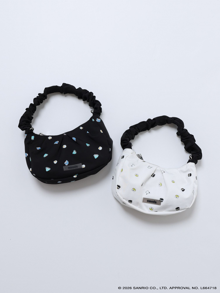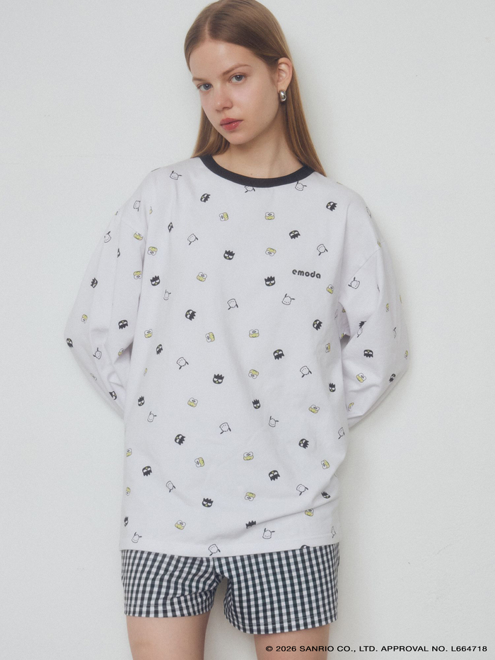 今回のコラボレーションでは、キャラクターをちりばめた総柄デザインのアイテムを3型共通で展開します。ホワイトカラーは、ポチャッコ、けろけろけろっぴ、バッドばつ丸、ブラックカラーはタキシードサム、ハンギョドン、あひるのペックルが登場。春夏にぴったりなギンガムチェック柄と掛け合わせ、EMODAらしいモノクロのカラーリングにまとめました。ラインアップはルームウェア、ポーチ、バッグの3型展開。