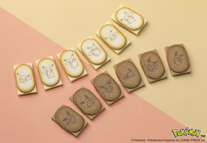 「はみ出しチョコのクッキーサンド」は、バナナヨーグルト味とキャラメルマキアート味の2つのおいしさをIN。バナナヨーグルトチョコレートをサンドしたクッキーにはピカチュウの絵柄を、キャラメルマキアートチョコレートをサンドしたクッキーにはイーブイの絵柄をそれぞれ描いています。シャリシャリッと軽やかに香ばしく焼きあげたラングドシャクッキーにショコラを思いっきりはみ出すことで、ショコラの存在感もサクサクのクッキーも一緒に楽しめます。