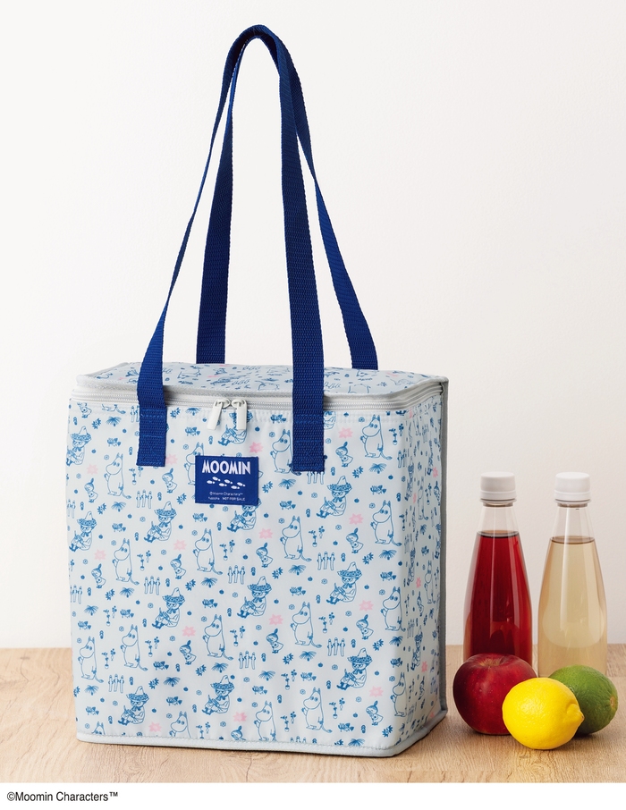 ムーミンの大容量の保冷保温バッグが登場!ムーミン、リトルミイ、スナフキン、ニョロニョロたちがとてもキュート。淡いグレーの地色にくすみピンク色のお花もワンポイントで描かれており、春の訪れを感じさせる北欧デザインとなっています。2Lのペットボトルが5本入る大きさ&高さです。生地も丈夫で安定感のあるボックス型なので自転車かごに入れやすく、食材や飲み物がたくさん収納できます。タグにはリトルミイの足跡があしらわれており、持ち手もショルダー掛けができる、ちょうどいい長さ。一年を通してお買い物に、ピクニックにと大活躍の保冷保温バッグです。
