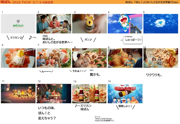 Mizkan(ミツカン)は、主力商品「味ぽん®」において、2026年2月27日(金)公開の『映画ドラえもん 新・のび太の海底鬼岩城』とタイアップした「ぽん!っと冒険キャンペーン」を、同日より全国で実施します。