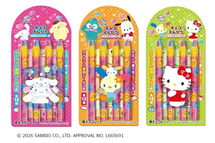「クロミチョコレート」「チョコえんぴつ(サンリオキャラクターズ)」「パラソルチョコレート(ポムポムプリン)」不二家から新発売!