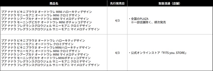 フィッツコーポレーションは、“みちょぱ”ことモデルの池田美優さんがプロデュースするフレグランスブランド「プア ナナラ」より、サンリオの日焼けしたデザインの「ハローキティ」「クロミ」「マイメロディ」「ポチャッコ」とコラボレーションした限定パッケージの香水とフレグランスジェルを、2026年4月18日(土)に数量限定で発売します。また、一般発売に先駆け、一部製品に関して、全国のPLAZA(一部店舗除く)、公式オンラインストア「FITS you. STORE」にて、2026年4月3日(金)より先行発売を順次開始します。
