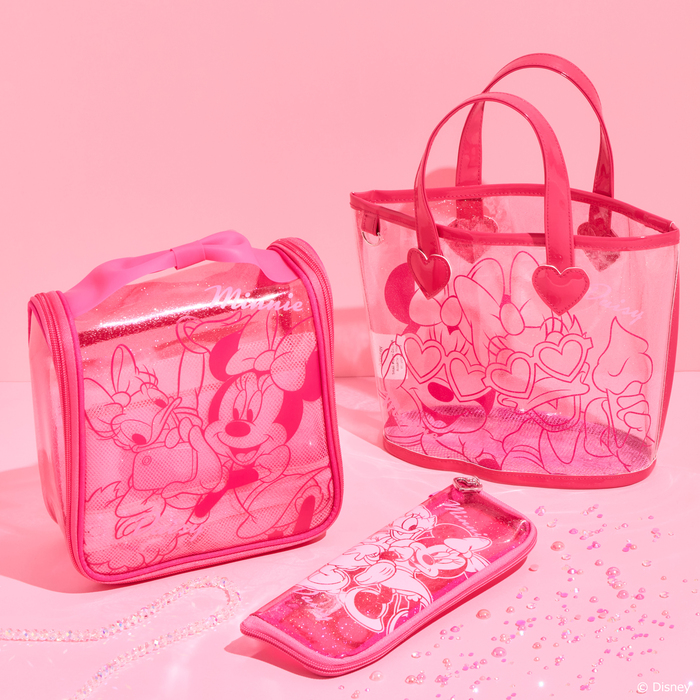 注目は、『ミニーマウス』&『デイジーダック』のアイテム類!二人のアイコンであるリボンモチーフや、グリッターラメを贅沢に使用したキュートなピンクカラーのアイテムが多数登場します。キラキラとしたホログラム仕様のガジェットケースやランチアイテム、大きなリボンが目を引くフラットポーチなど、手に取るだけで気分を上げてくれるアイテムが多数登場。パタッと折って持ち運びできる一人用のレジャーマットや、薄く畳めて持ち運び簡単なスツールなど、おでかけシーンにぴったりのアイテムもお目見えします。